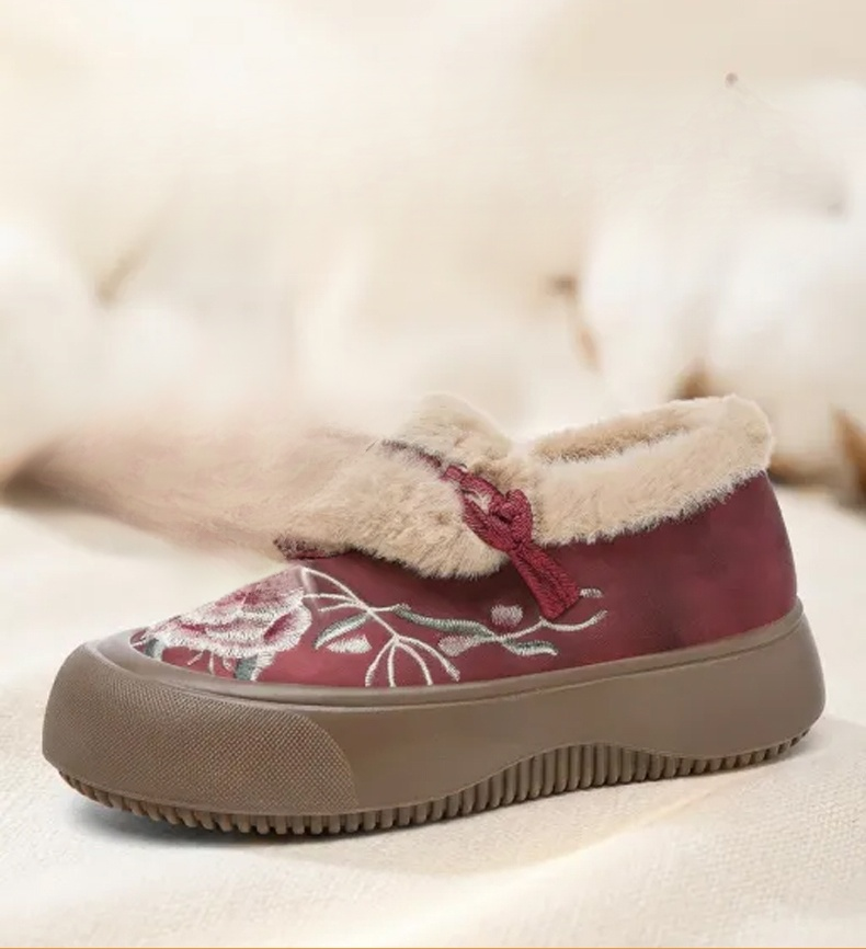 刺繡加絨免彎腰自滑鞋